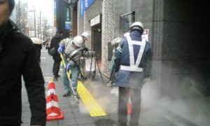 新宿の甲州街道沿いの歩道での光景である。歩道の表面にこびりついた「吐き捨てられたガム」をひとつひとつはがしているという。なんという大掛かりな作業であろうか?と思うと同時に、一人ひとりのちょっとした不注意、甘えがこんなことになり、またこのような人たちがいるからこそ、街の美観が保たれているというありがたさを目の当たりにした。